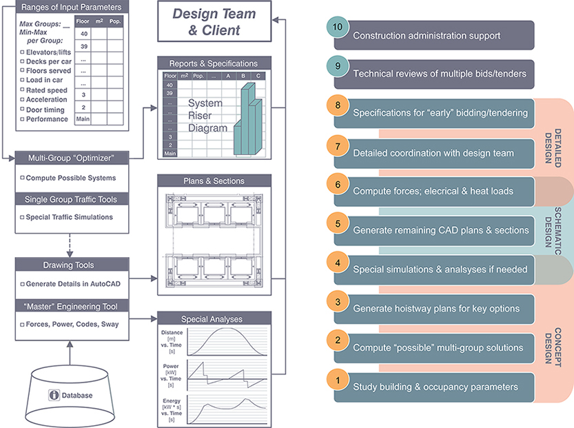 ○ Unique multi-elevator-group optimizer finds potential solutions for high-rise systems, solving complex combinatoric options